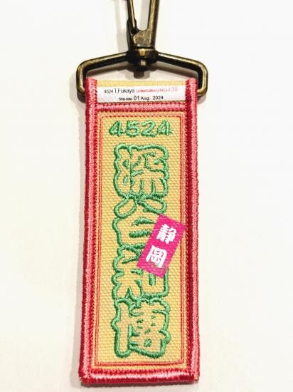 本人使用済みの防護具(ケブラーズボン)をリサイクルし、千社札をモチーフにしたキーホルダーです。裏面は選手それぞれのデザインになっています。使用期間も明記してあります。